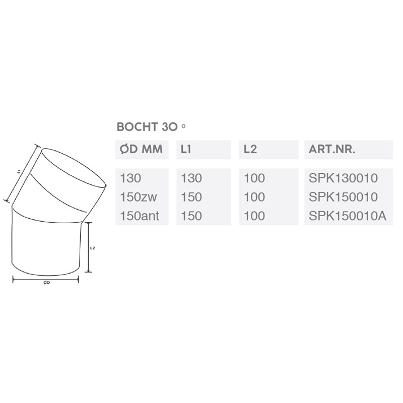 Artikelcode: SPK150010 Artikelnummer: bocht-dikwandig-staal-zwart-o-150-mm-30-graden-32440 Categorieën: , , ,