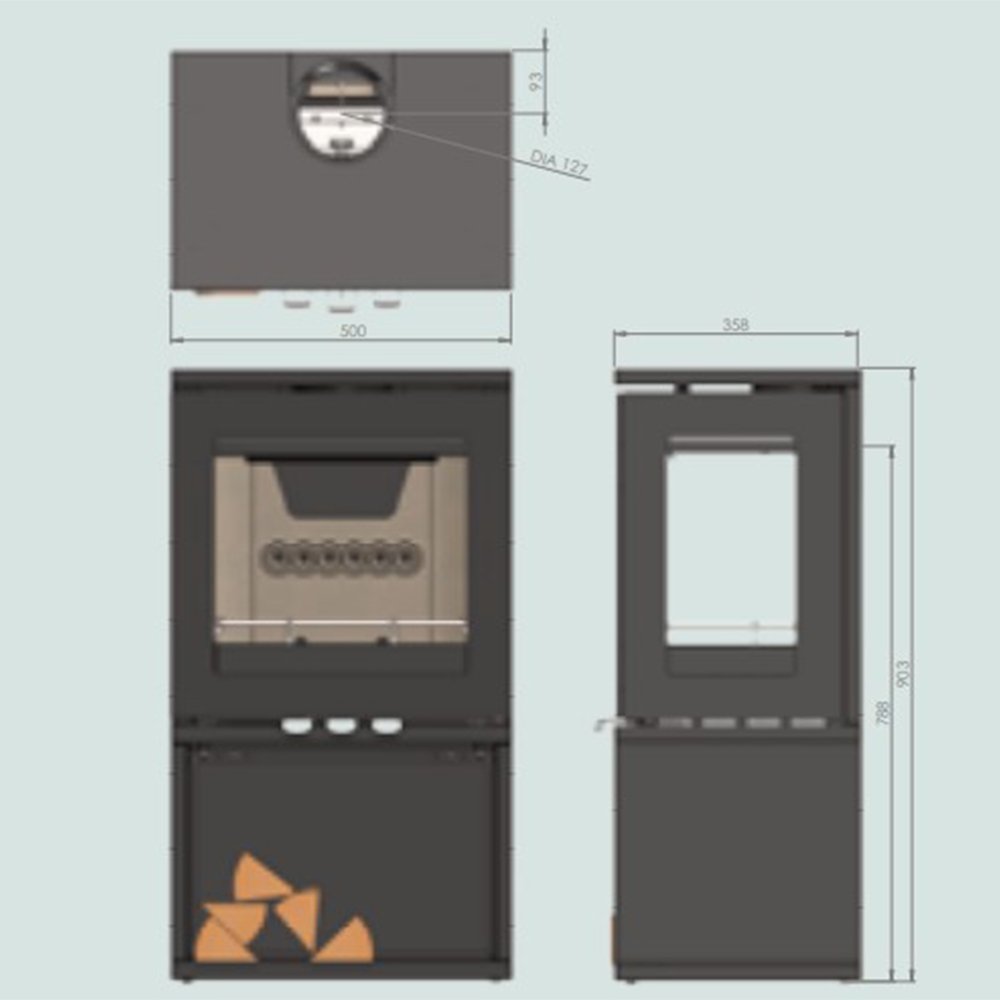 - Boven- en achteraansluiting wat meer flexibiliteit geeft bij het installeren van de kachel