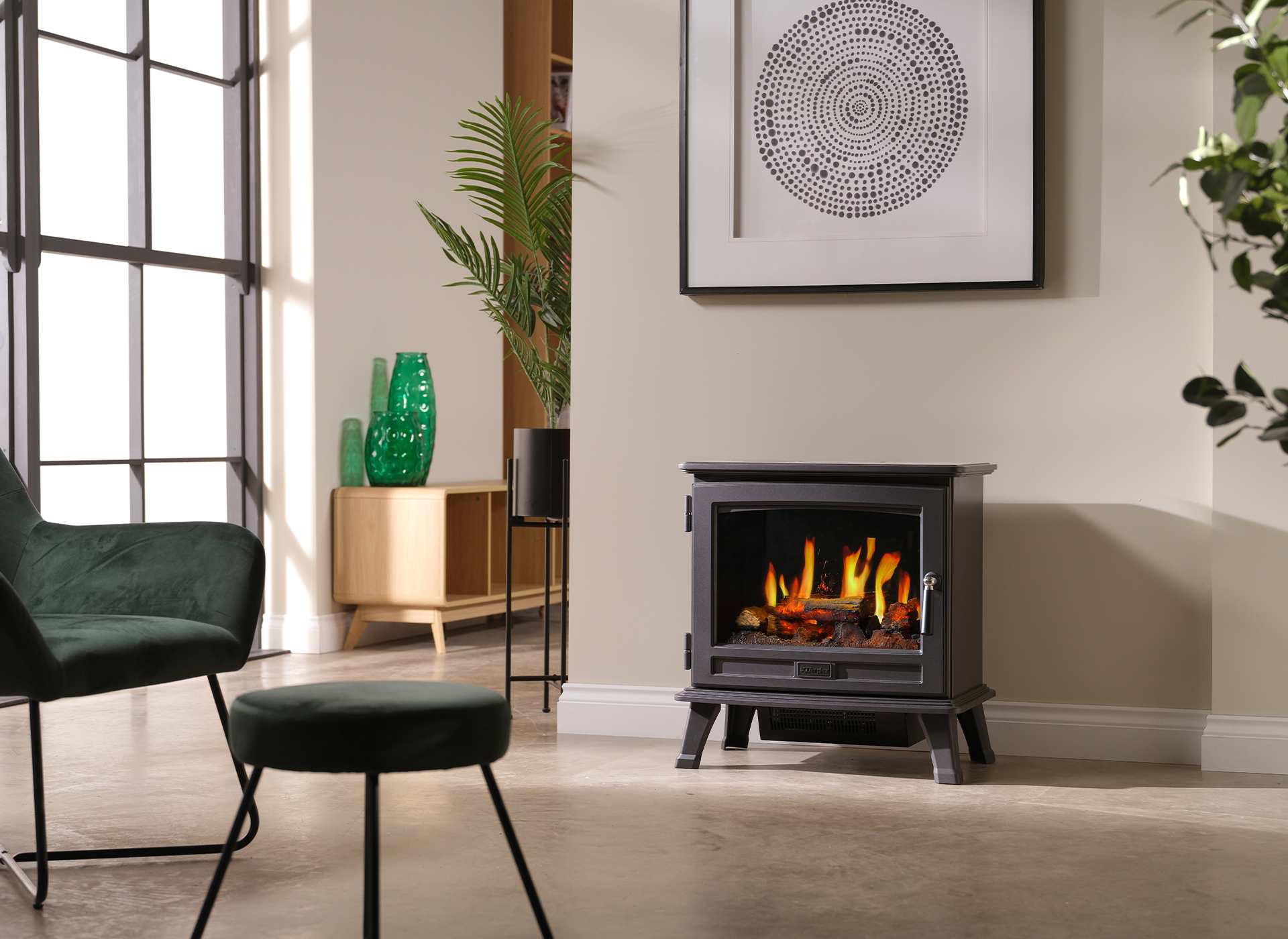 De Belgravia is een vrijstaande elektrische haard met de charme van een gietijzeren kachel. Dankzij het tijdloze ontwerp en de hoogwaardige afwerking past hij perfect in elk interieur. De Opti-V®-technologie zorgt voor een levensecht vlameffect met knisperend haardgeluid en subtiele vonken.