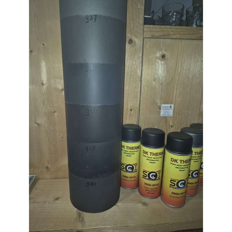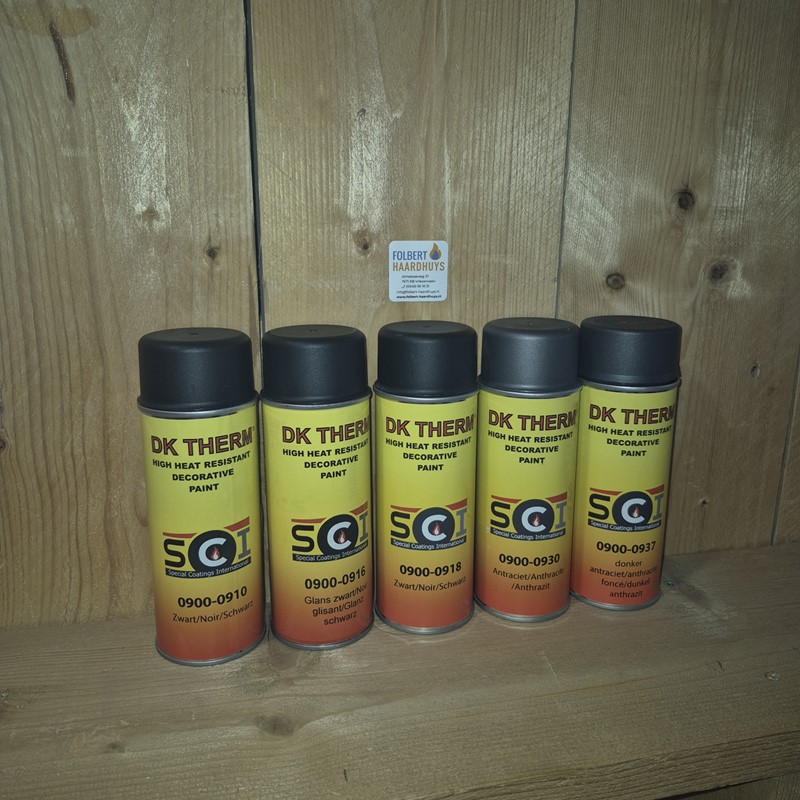Ekotherm hittebestendige verf in spuitbus. Vuurvaste verf voor het spuiten van uw kachel en/of rookgasafvoer. Ook uitermate geschikt voor het spuiten van bijvoorbeeld uitlaten of BBQ.
