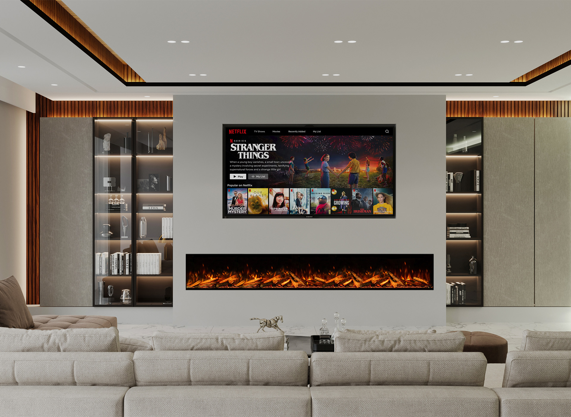 Altijd al gedroomd van die grote cinewall in je woonkamer? Voor degenen met een 75″ televisie die streven naar naadloze integratie, is de Pano X de perfecte match in design. Het elegante ontwerp vult de strakke lijnen van uw scherm aan en creëert een prachtig middelpunt in uw kamer, waardoor elke filmavond een luxe ervaring wordt.