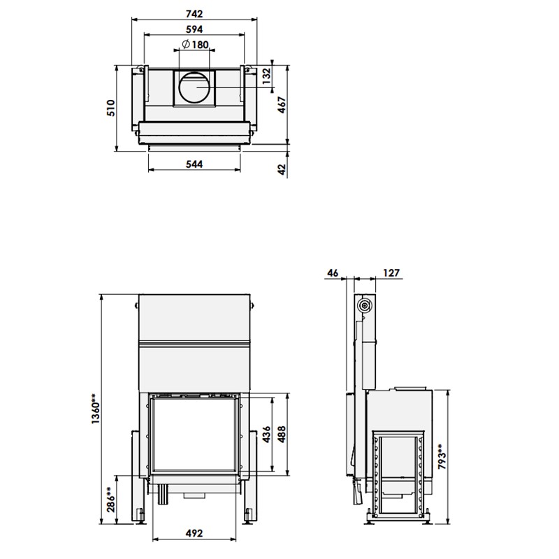 – Rookgasafvoer: Ø180 mm