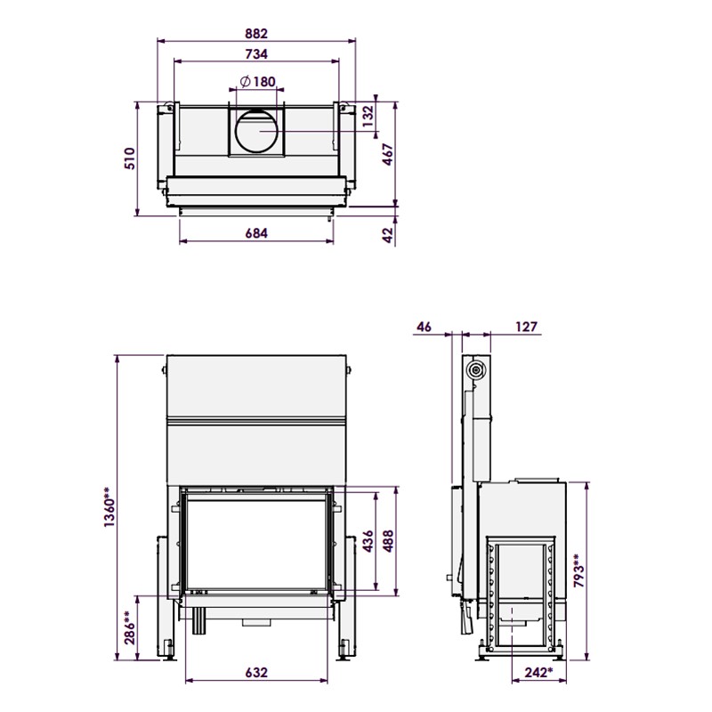 – Rookgasafvoer: Ø180 mm