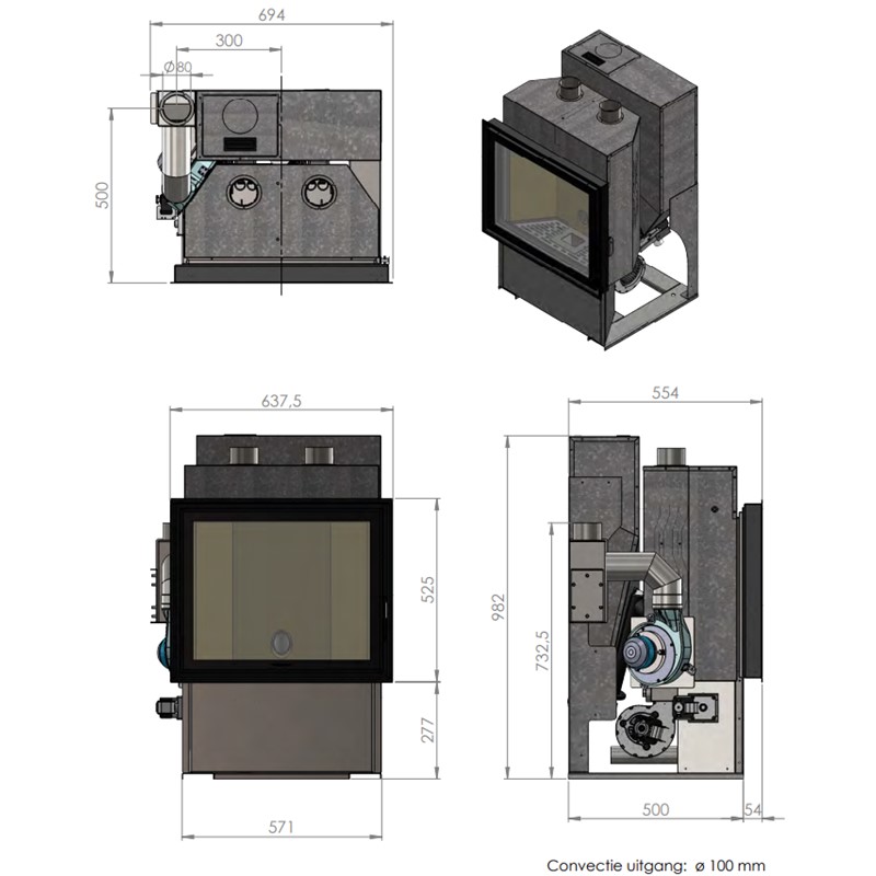 – Aansluiting convectie uitgang: (2x) Ø 100mm