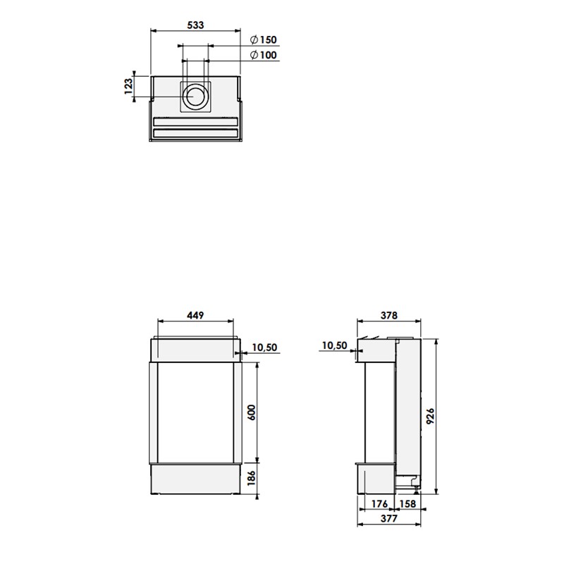 – Rookgasafvoer / luchttoevoer: Ø100-150mm