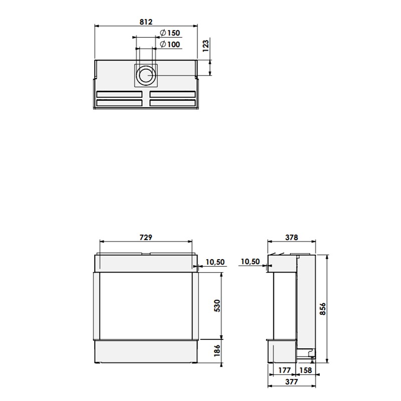 – Rookgasafvoer / luchttoevoer: Ø100-150mm