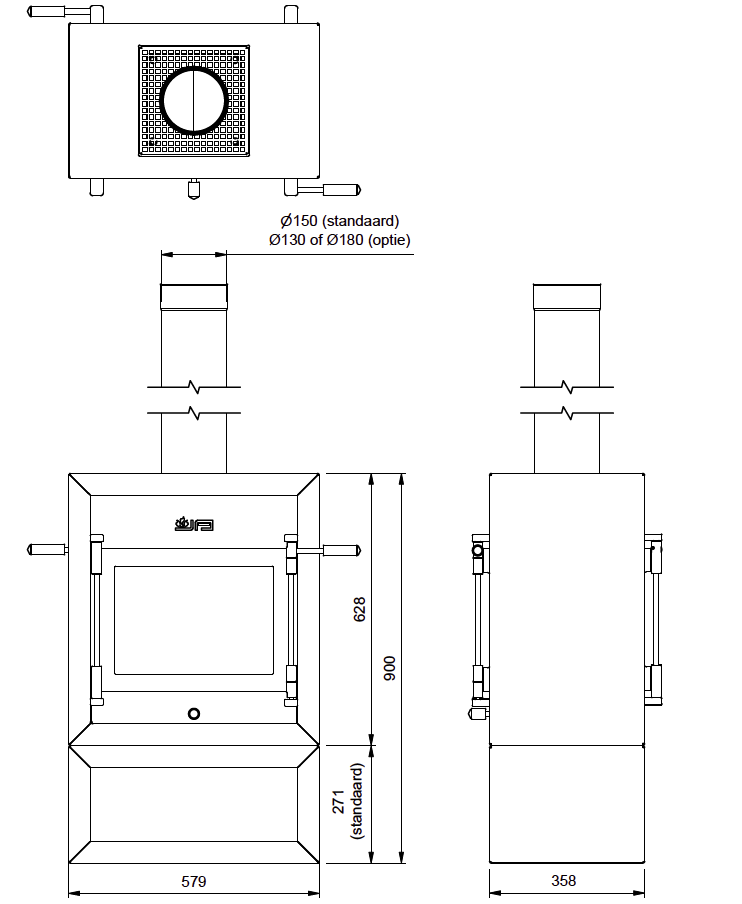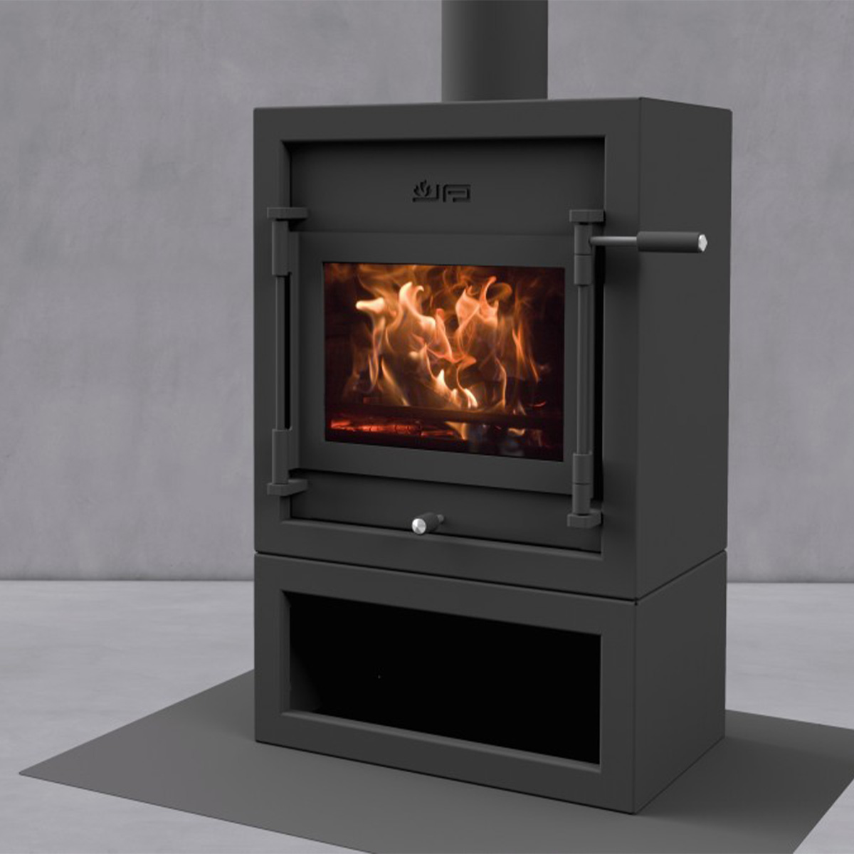 De hoogte van de kachel wordt bepaald door het onderstel. Deze heeft standaard een hoogte van 90 cm en is als maatwerk in iedere afmeting verkrijgbaar. Dat geldt voor zowel de hoogte als de breedte, het onderstel kan dus ook breder dan de kachel worden geleverd waardoor er een soort plateau wordt gecreëerd. De mogelijkheden zijn eindeloos bij de Kwadraat serie!