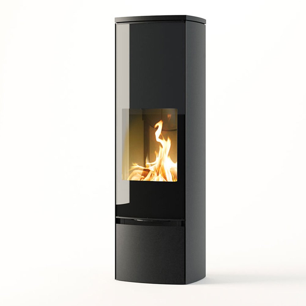De Jydepejsen Bella high houtkachel heeft veel gemeen met Senza en is zeer geschikt voor energiezuinige huizen of huizen met een lage warmtebehoefte. Bella wordt standaard geleverd met een zelfsluitende deur en een aansluitmogelijkheid voor externe lucht toevoer. Deze zeer strakke designhaard is voorzien van een deur met een gehele glazen voorzijde. Samen met de geïntegreerde handgreep zorgt deze voor de strakke vormgeving en de moderne uitstraling van de Jydepejsen Bella. Verkrijgbaar in vier verschillende uitvoeringen: met of zonder zijruit, gecombineerd met twee verschillende hoogten zoals deze Bella High. Als accessoire kunnen accumulatiestenen worden aangeschaft, deze worden onzichtbaar in het bovenste gedeelte van de Jydepejsen Bella geplaatst en blijven uren lang aangename warmte verspreiden nadat de kachel is uitgebrand.