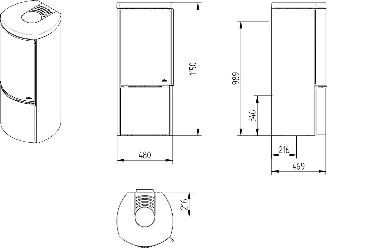 Let op: Indien de kachel aan de achterzijde wordt aangesloten, is een afdekplaatje (meerprijs, zie extra’s) voor het afsluiten van de rookgasaansluiting boven noodzakelijk.