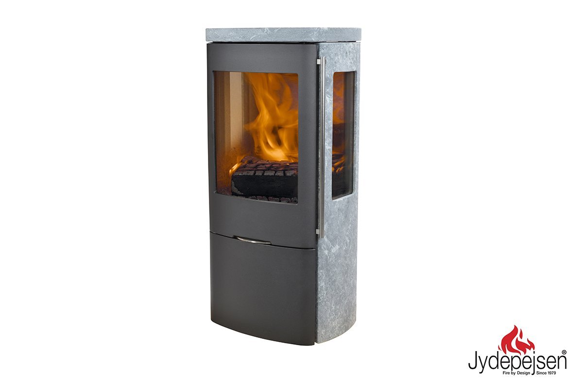 De Jydepejsen Senza Speksteen houtkachel is uitermate geschikt voor huizen met een lage warmtebehoefte, zoals energiezuinige huizen, kleinere woonkamers, of zomerhuizen. De voor- en bovenzijde bestaan uit massief gietijzer. De deur sluit vanzelf d.m.v. magneten, wat de kachel een elegante en stijlvolle aanblik geeft. De senza is verkrijgbaar in vier uitvoeringen, met of zonder zijruiten. Bij de modellen met zijruiten heb je vanaf drie zijden een prachtig zicht op het vuur.
