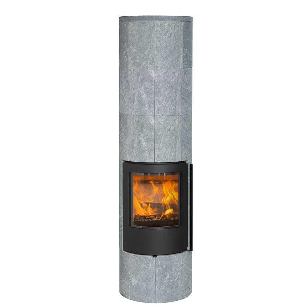 De prachtige hoge ronde speksteenkachel Jydepejsen Troja 46 is ideaal voor hele grote ruimtes. Het massieve Finse speksteen om deze houtkachel zorgt een uiterst efficiënte warmteverspreiding en de speksteenbekleding sluit nauw aan op de inzethaard. De natuurlijke decoratie van het speksteen van elke Jydepejsen Troja maakt dat ieder model uniek is. De Jydepejsen Troja heeft aan de bovenzijde een convectierooster waardoor regeling van de warmteverspreiding door het convectiekanaal mogelijk is.