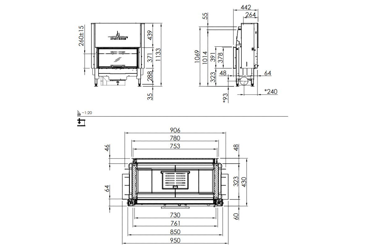 - Lijntekening Spartherm Linear Tunnel 73×37
