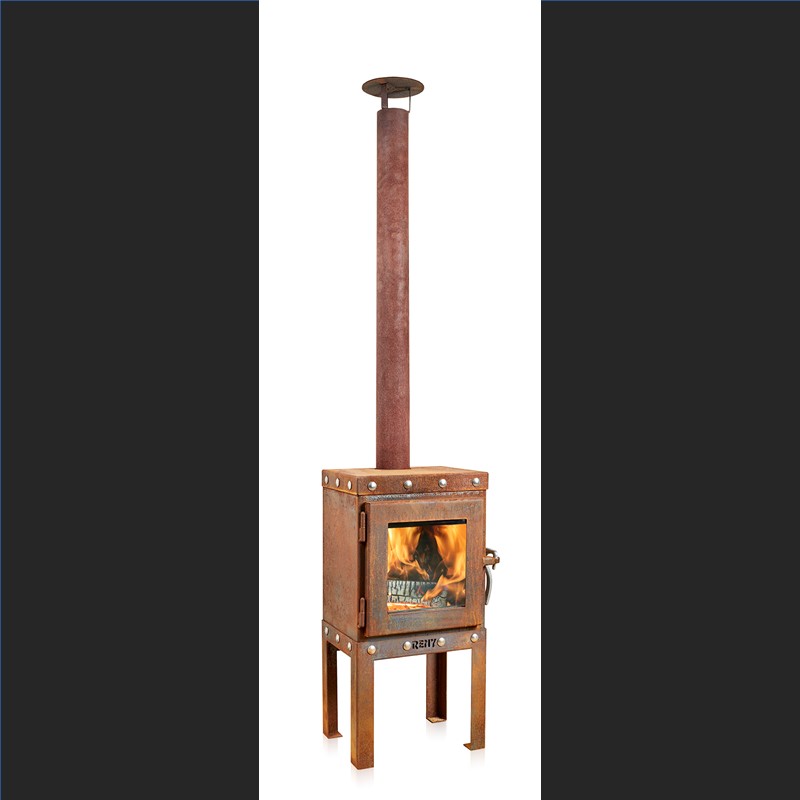 Het model PIQUIA is een oerdegelijke compacte houtkachel van Cor-Ten staal met een industriële uitstraling voor gebruik buiten.