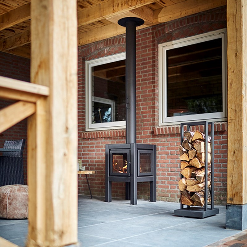 Deze kubusvormige terraskachel heeft een unieke modulaire constructie en kan daarom naar wens worden samengesteld met 1 (in deur) tot 4 glaspanelen.