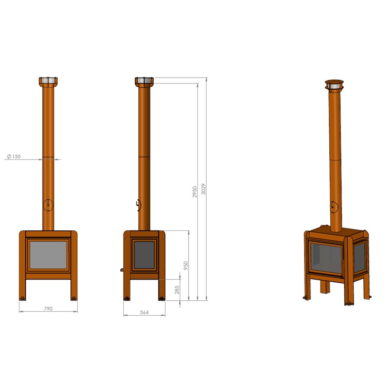 De aansluiting op de kachel valt in het rookkanaal, zo kan er geen regenwater in de kachel terecht komen. De kachel is standaard voorzien van een betonnen stookbodem. Alle verdere aansluitmaterialen en of opties kunnen er los bijbesteld worden. De Fennek is volledig opgebouwd uit Cortenstaal en weegt respectievelijk 90 Kg en 110 Kg.