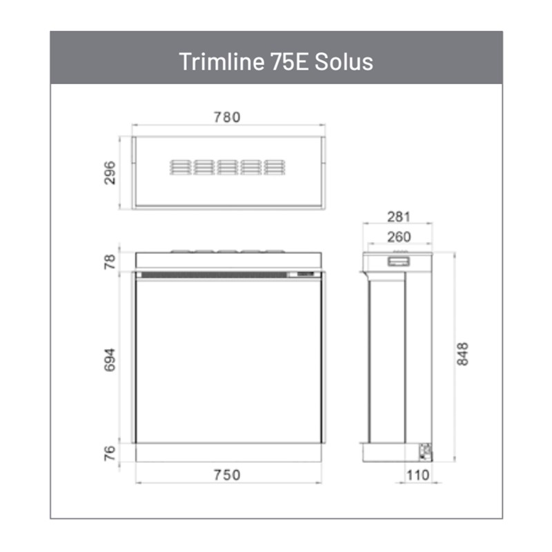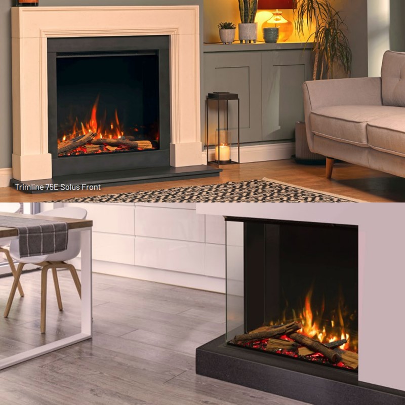 De Trimline 75E Solus is een zeer veelzijdige haard, die zich in zowel een moderne als in een klassiekere omgeving past. De standaard fronthaard kan eenvoudig worden omgebouwd tot een hoek- of panoramisch vuur.