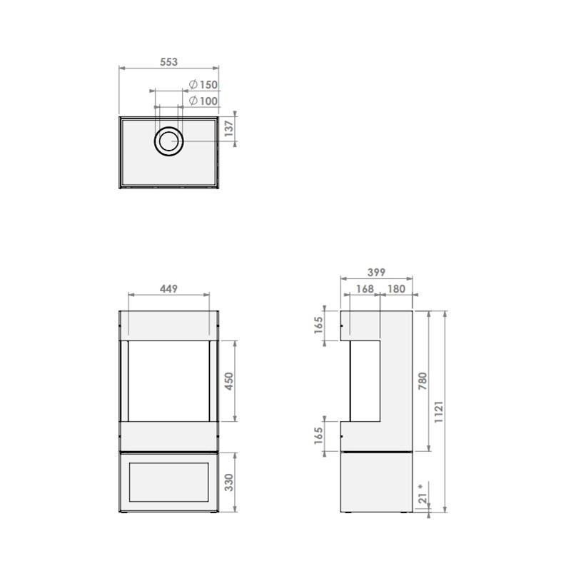 – Rookgasafvoer- luchttoevoer: Ø 100-150 mm