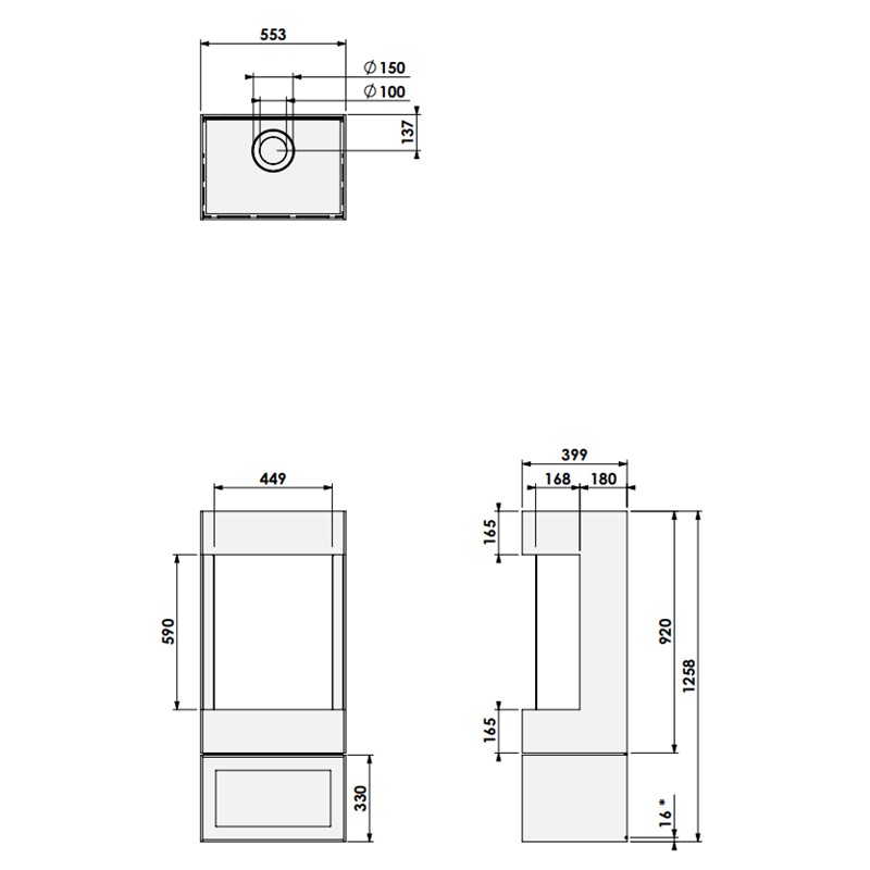 – Rookgasafvoer- luchttoevoer: Ø 100-150 mm