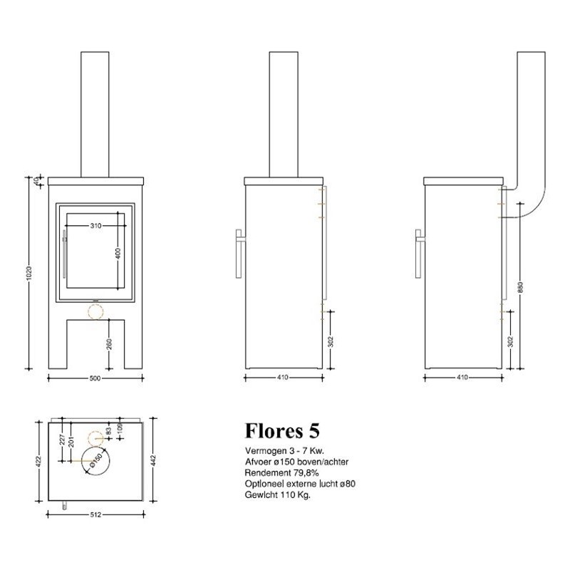 De Flores 5 is de grootste kachel van de Flores Eco-serie. Onderschat deze compacte stookkamer niet! Hij is krachtig genoeg om warmte te brengen, maar omdat de Flores 5 traploos regelbaar is, is deze kachel tegelijkertijd in staat om hele avonden voor sfeer en beleving te zorgen.