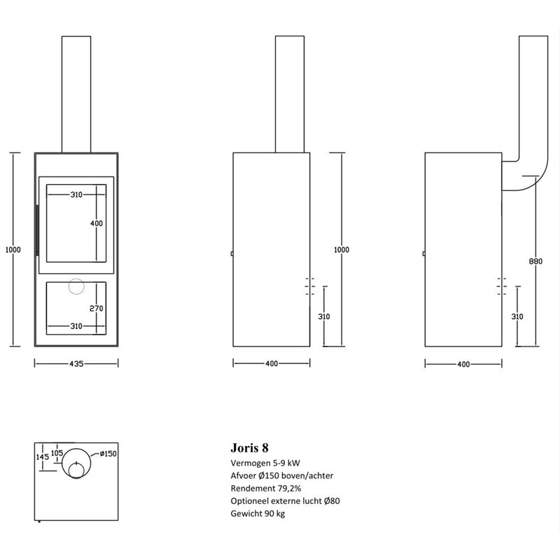 De Joris 8 is strak vormgegeven in een volledige 6 mm dikke omkasting en bestaat uit maar liefst 2 stookkamers. Wanneer u effectief wilt verwarmen kunt u kiezen voor de Joris 8.