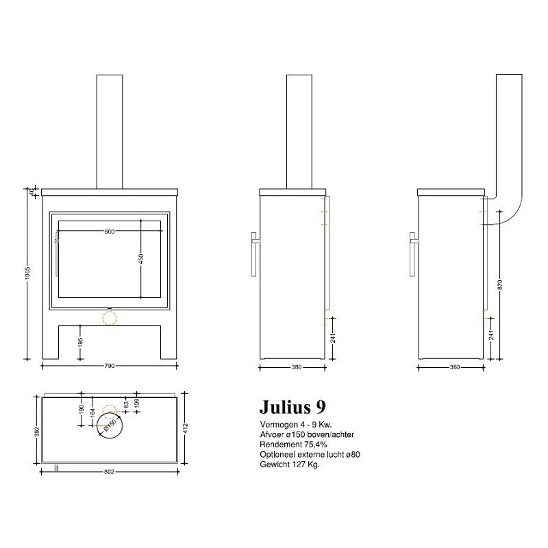 De Julius 9 is een echte krachtpatser in zowel capaciteit als in uitstraling. Het is een krachtige verwarmer in optima forma van Buntfires. De kachel is geschikt voor grotere woningen.