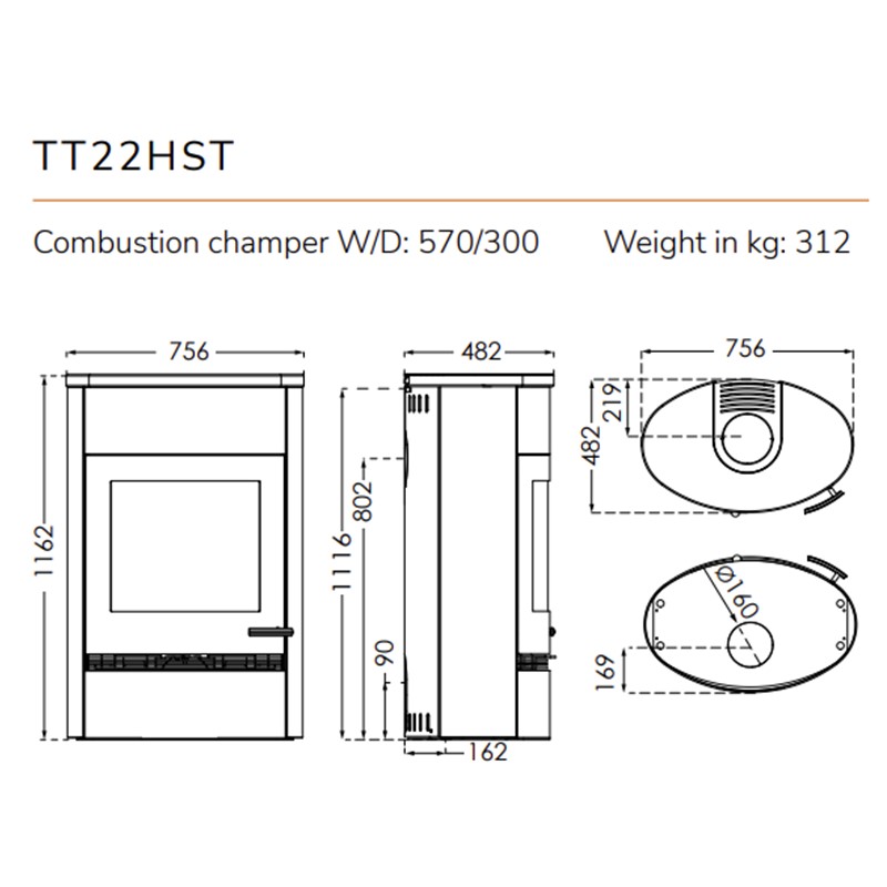 De TT22HST is een kache die warmte op kan slaan. Onder de topsteen zijn 4 grote speksteenblokken geplaatst, die samen met de bekleding de warmte van de kachel opslaan. Om het ontwerp af te rpnden, is er ook speksteen in het brandhoutgedeelte geplaatst.