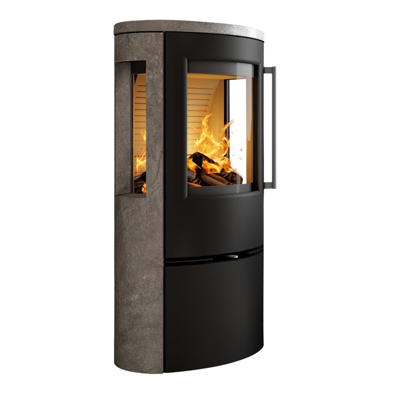 De TT23RGS is uitgerust met speksteen. Het zijlicht in de speksteen is als geheel uit 1 stuk speksteen geslepen, zodat de elegante en strakke lijnen van de kachel behouden blijven zonder onnodige voegen in de steen.