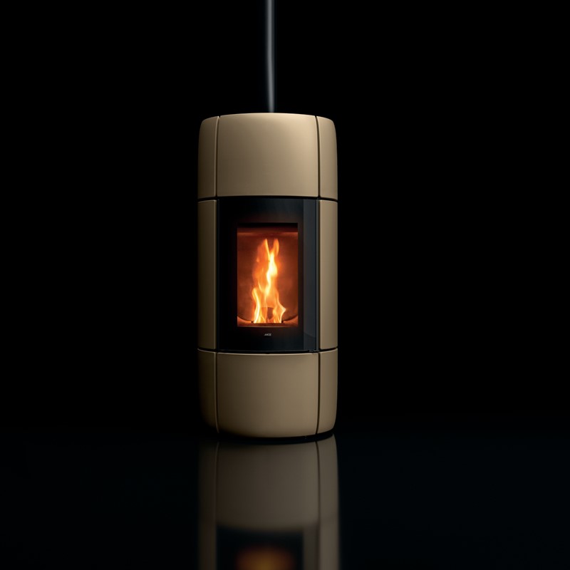 De Curve met dubbele deur is een ronde pelletkachel met stijlvolle lijnen in een keramiekmantel.