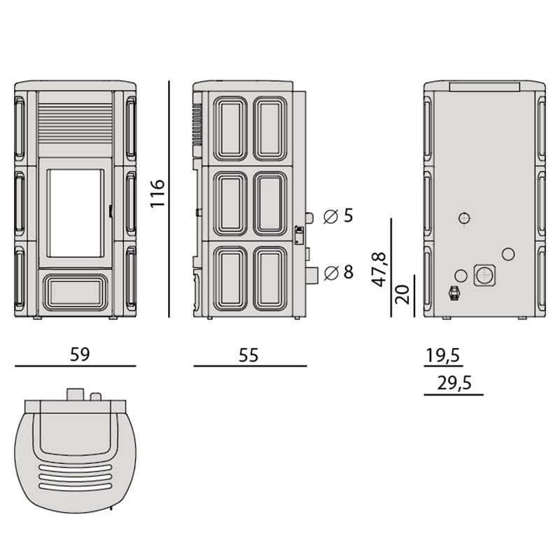 – Rookgasafvoer: Ø 80 mm