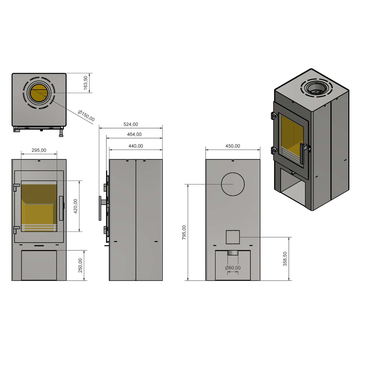 | Rookgasafvoer (diameter) | 150 millimeter |