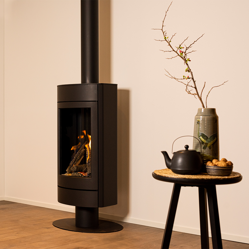 Voor deze vrijstaande gaskachel heeft Wanders compleet nieuwe branders ontwikkeld waarbij de vlammen echt uit de blokken komen. Deze suprieure verbrandingstechniek geeft een heel erg realistisch vlammenspel met een prachtige houtset.