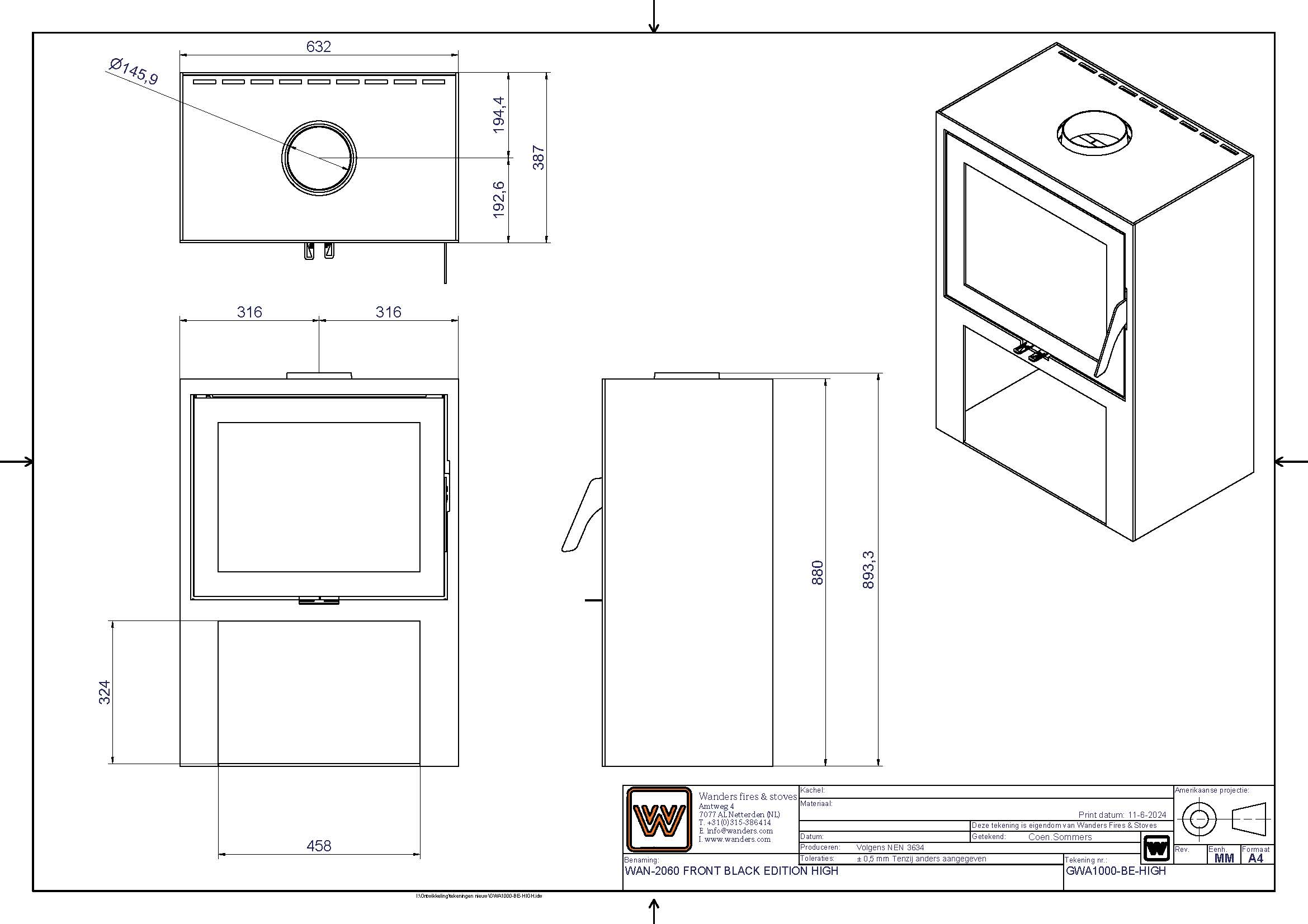 De Wanders WAN 2060 Black Edition High is een vrijstaande houtkachel met een moderne uitstraling en een rechthoekig ontwerp. Het is gebaseerd op de WAN 2060 Front inzethaard, omgeven door een stijlvolle stalen mantel.